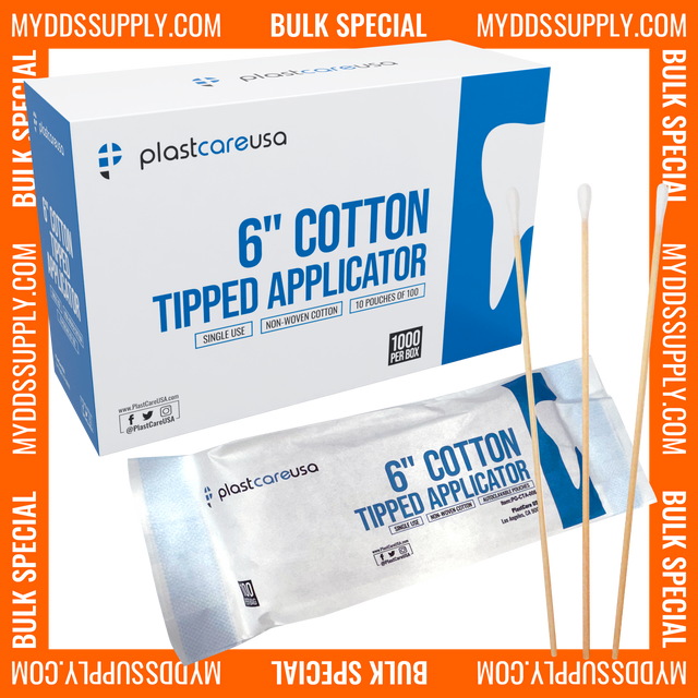 10,000 6" Cotton Tip Applicators by PlastCare USA - (100 Packs of 100) *Bulk Special* is backordered and will ship as soon as it is back in stock.