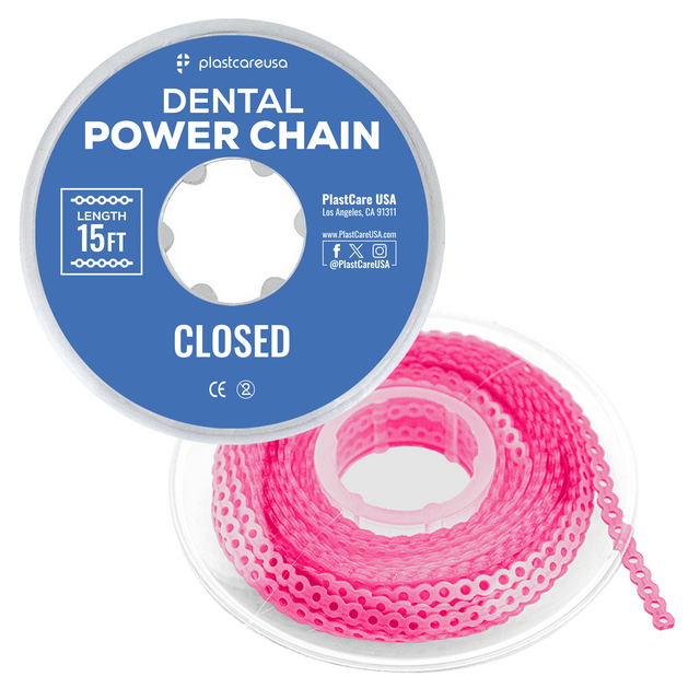 Pink Dental Power Chain (Closed) – 15 ft Orthodontic Elastic Chain for Braces