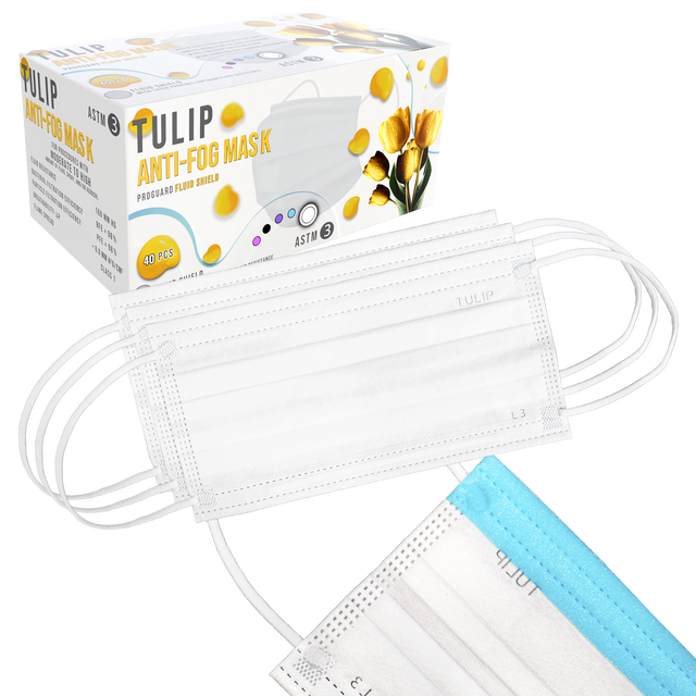 - Designed for maximum protection and comfort, TULIP’s Anti-Fog Level 3 Masks are perfect for environments with moderate to high fluid exposure. These premium masks feature a unique anti-fog strip that ensures clear visibility, ideal for healthcare professionals and anyone in need of reliable, fog-free performance.