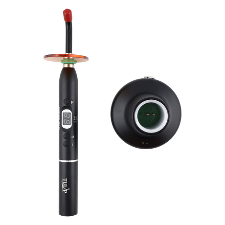 Tulip Cordless Dental 4 LED Curing Light – 1200 mW/cm² 430-485nm Stainless Steel Design (Black)