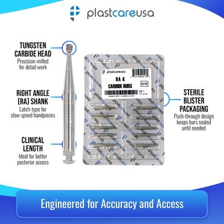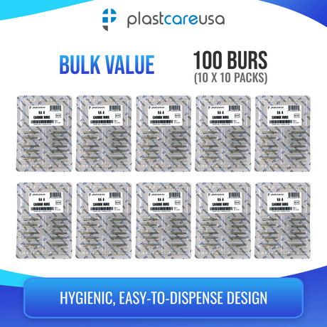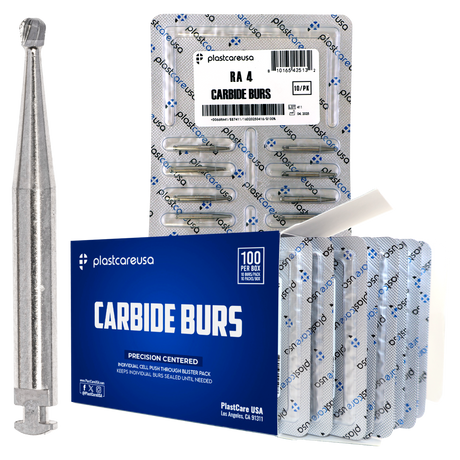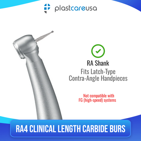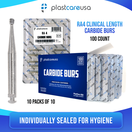 PlastCare USA RA 4 Carbide Burs - 100 Pack (10 Packs of 10) for Slow-Speed Handpieces