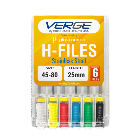 25mm Size 45-80 H Files Hedstrom Endodontic Stainless Steel Dental Root Canal Files (Pack of 6)
