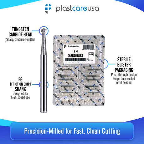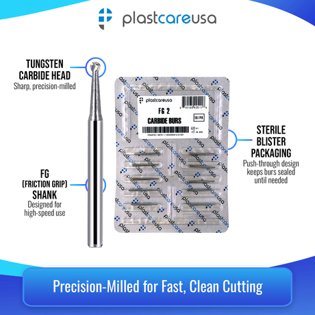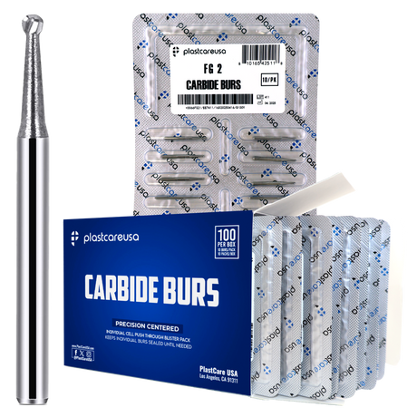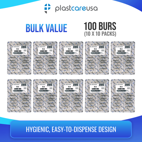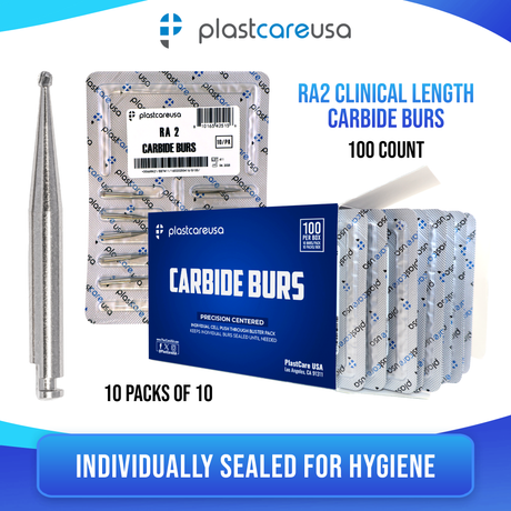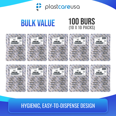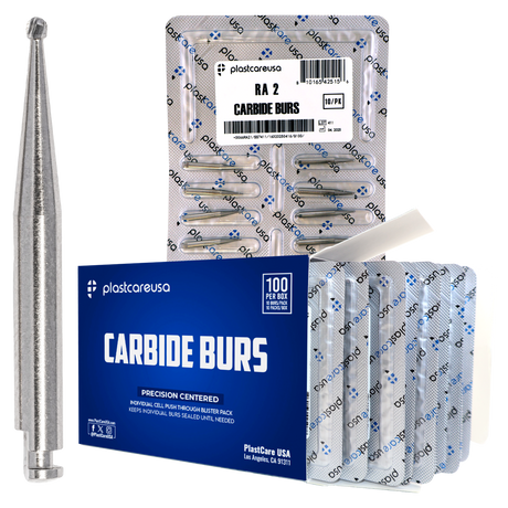 PlastCare USA RA 2 Carbide Burs - 100 Pack (10 Packs of 10) for Slow-Speed Handpieces