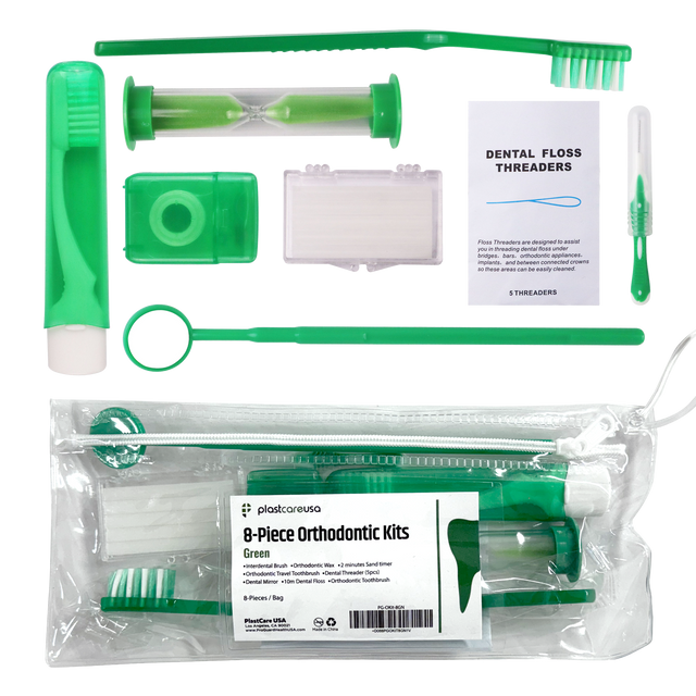 Comprehensive Orthodontic Solution: The Green Orthodontic 8 Piece Patient Kit includes essential dental care tools designed for optimal orthodontic maintenance. Each bulk pack contains 12 individually packaged kits, perfect for dental practices or patient giveaways.