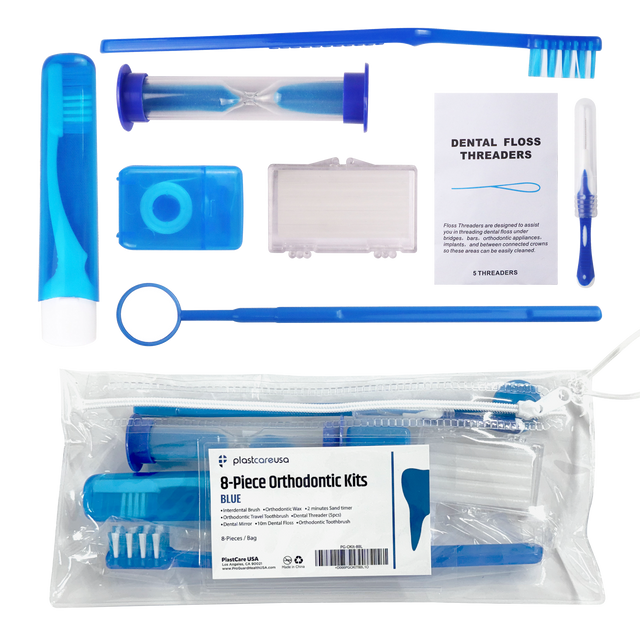 Comprehensive Orthodontic Solution: The Blue Orthodontic 8 Piece Patient Kit includes essential dental care tools designed for optimal orthodontic maintenance. Each bulk pack contains 12 individually packaged kits, perfect for dental practices or patient giveaways.