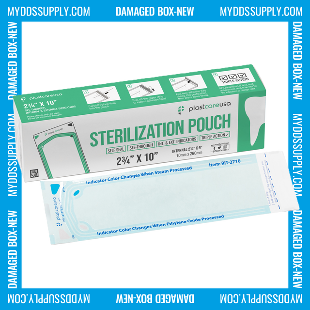 Worn Box-New 1000 2.75" x 10" Self-Sealing Sterilization Pouches by PlastCare USA