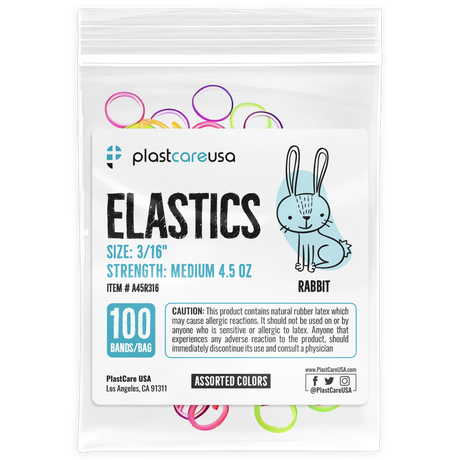 - PlastCare USA - 2000 (3/16" Rabbit, Medium 4.5 Oz) Assorted Colors Orthodontic Latex Elastic Rubber Bands for Braces Regular price $19.99Unit price /Unavailable
