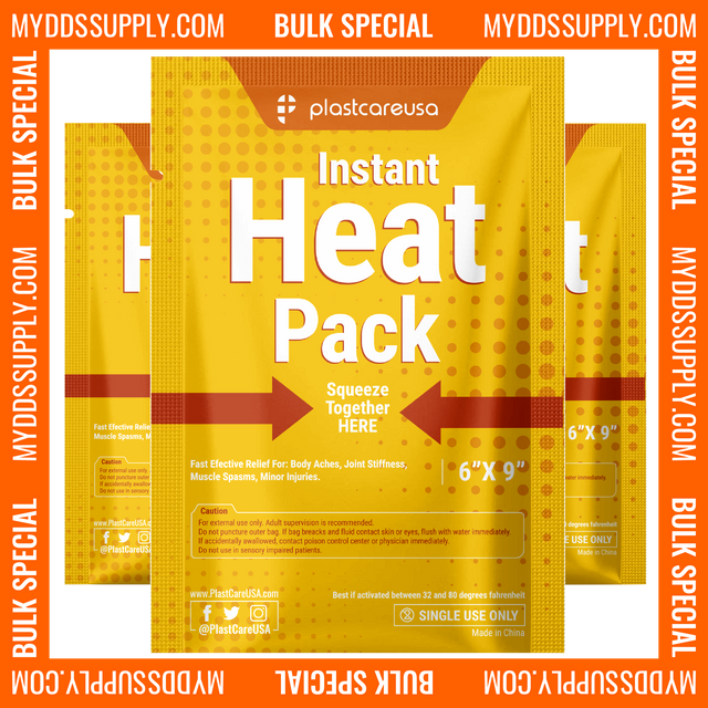 100 6" x 9" Instant Heat Packs for Pain Relief, Muscles, Sprains (4 Cases of 25)